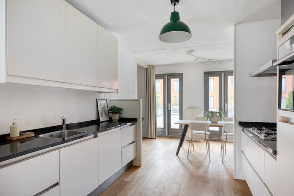 Deze ruime, instapklare stadswoning in de populaire wijk 'de Bergen' biedt een unieke kans. Gelegen in het wooncomplex 'Cicogne', geniet je van een centrale entree met een afgesloten poort en toegang tot een sfeervol binnenplein vol groen. De woning is gebouwd in 2004 en heeft een woonoppervlakte van circa 116 m², exclusief een dakterras van 17 m². De indeling is praktisch en doordacht, met een lichte living en een centrale keuken op de begane grond. De eerste verdieping beschikt over twee royale slaapkamers en een nette badkamer. Boven biedt het dakterras toegang tot nog twee slaapkamers. Met eigen parkeerplaats en berging, volledig geïsoleerd en energielabel A, is dit een aantrekkelijk aanbod in het hart van Eindhoven. Maandelijkse servicekosten zijn € 195,60.