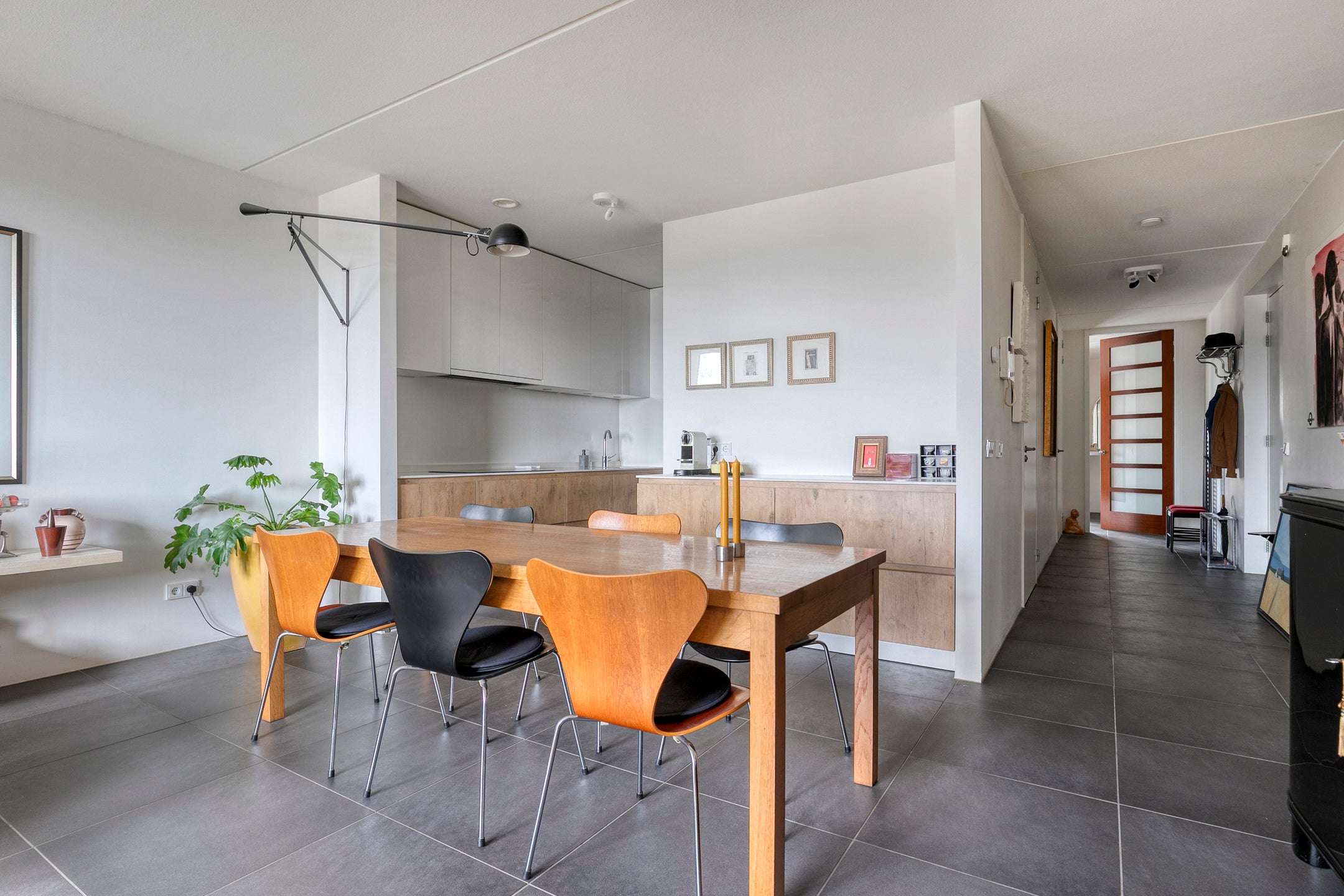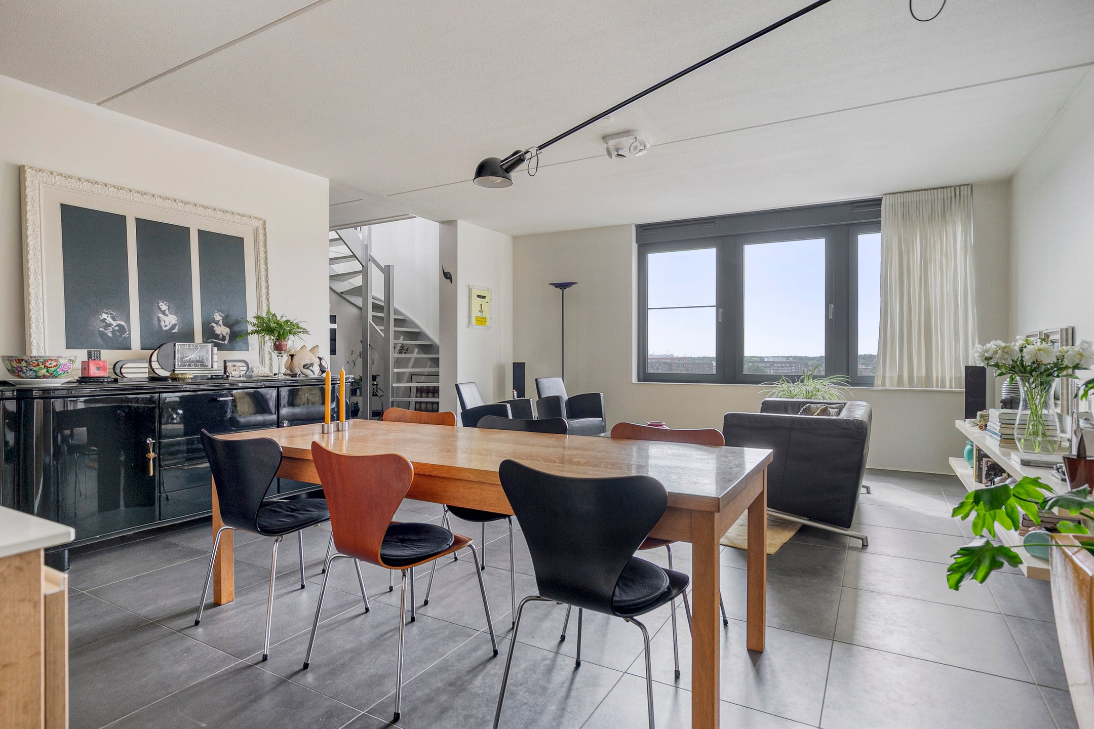 Op Strijp-S vind je het unieke 3-kamer penthouse van ca. 145 m², gelegen op de 8e en 9e verdieping, waar industrieel erfgoed en modern wonen samenkomen. De lichte en ruime woonkamer is perfect voor ontspanning en biedt toegang tot een stijlvol afgewerkte open keuken, uitgerust met luxe apparaten. De slaapkamer beschikt over een badkamer "en suite" met een inloopdouche en dubbele wastafel, en is verbonden met een walk-in closet. Bovenop het penthouse is er een multifunctionele ruimte met veel licht en toegang tot een prachtig dakterras met panoramisch uitzicht. Dit energiezuinige penthouse heeft een eigen parkeerplaats en lage VvE-bijdrage, en ligt in een levendige buurt met restaurants en culturele activiteiten.