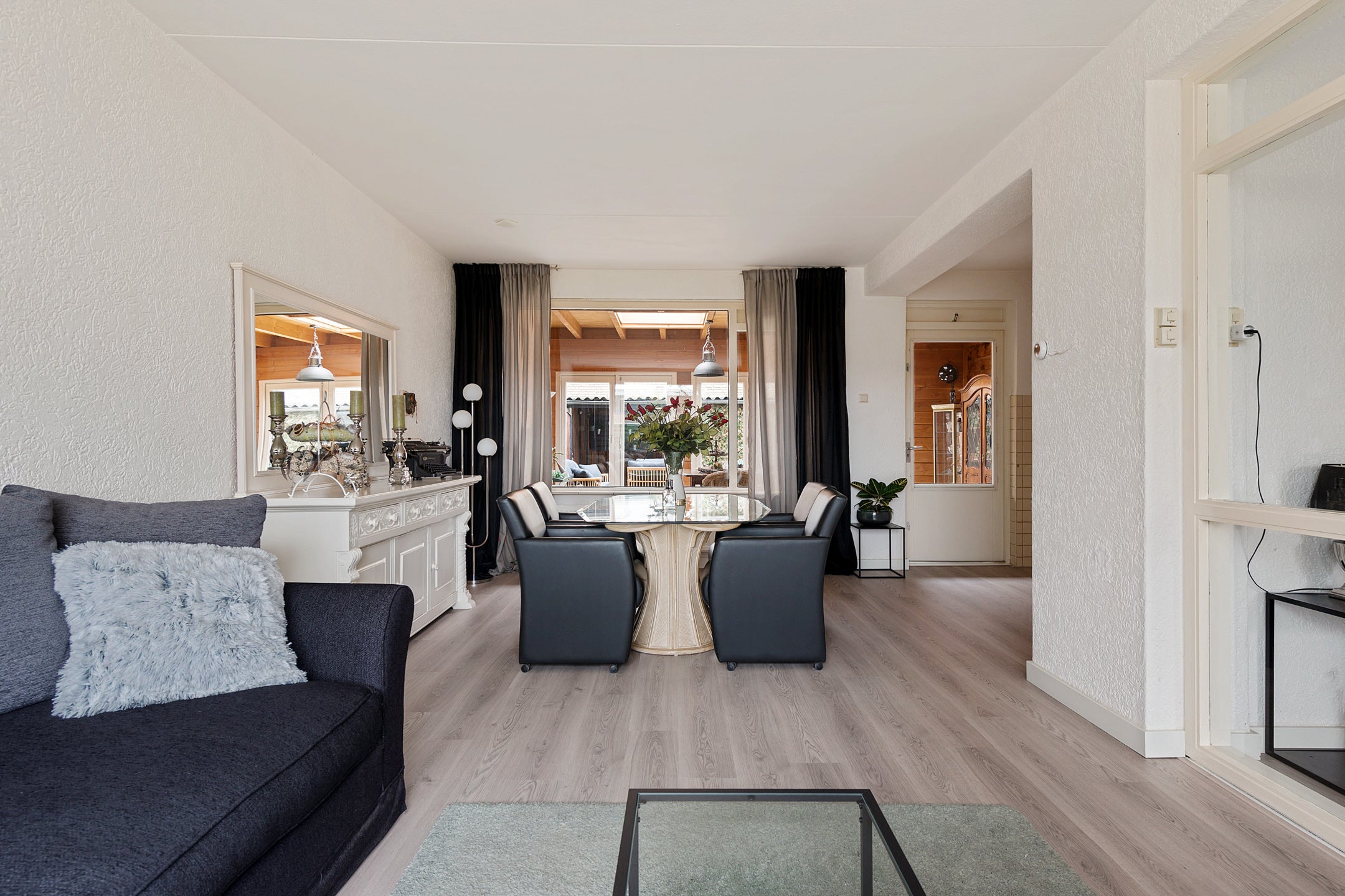 Ben je op zoek naar een gezinswoning op een rustige locatie met alle voorzieningen dichtbij? Dan is deze woning ideaal. Gelegen aan een rustig spoor biedt deze ruime, goed onderhouden woning veel privacy en vijf slaapkamers, perfect voor een groot gezin of thuiswerk. Bij binnenkomst kom je in de hal die toegang geeft tot een woonkamer met een halfopen keuken, uitgerust met moderne apparatuur zoals een gasfornuis en vaatwasser. Vanuit de keuken bereik je een lichte aanbouw dankzij twee lichtkoepels, wat extra leefruimte biedt. De achtertuin is fraai aangelegd met voldoende privacy, een berging, overkapping en achterom. De woning is dichtbij een speeltuin en op loopafstand van diverse voorzieningen en natuurgebieden.