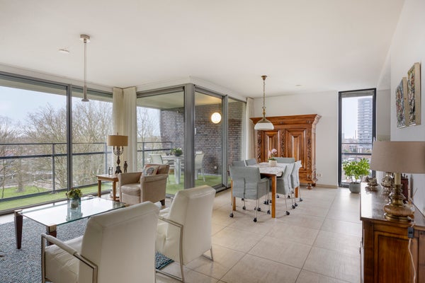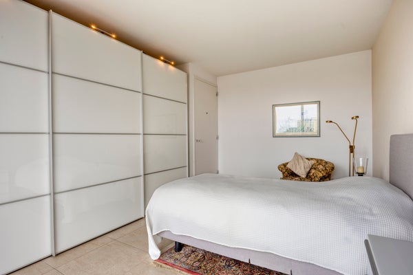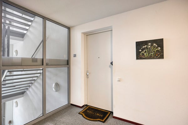 - De galerijflat heeft een woonoppervlakte van 110 m² en beschikt over 3 kamers, waarvan 2 slaapkamers;