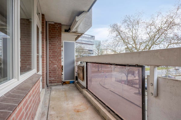Vanuit de woonkamer heb je toegang tot het balkon. Een fijne buitenruimte met plek voor een zitje, ideaal om te genieten van een kop koffie of een moment van ontspanning.