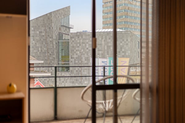 • Balkon op het zuidwesten met uitzicht op Van Abbemuseum en De Dommel