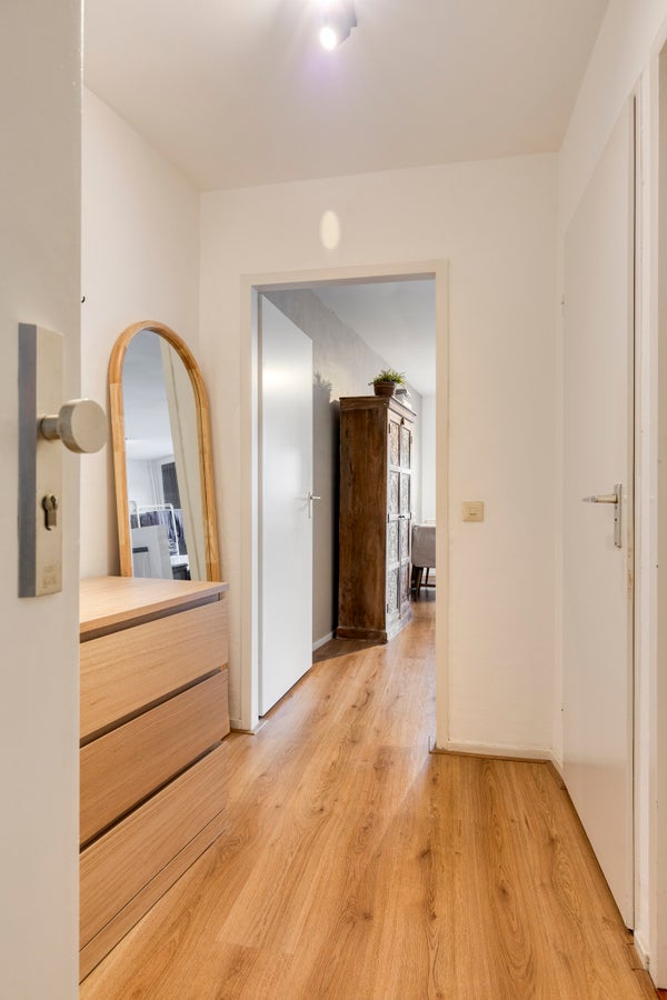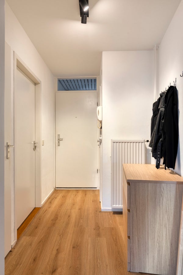 Via de lift of trap bereik je de tweede woonlaag. Het appartement is gelegen aan het einde van de galerij, wat zorgt voor extra privacy. Bij de voordeur bevindt zich de meterkast met vernieuwde groepenkast.