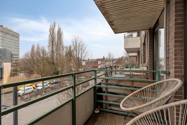Het balkon is bereikbaar via de schuifpui en is gelegen op het zuidwesten. Hier geniet je van veel zonuren en heb je uitzicht op het Van Abbemuseum en De Dommel. Een fijne plek om buiten te zitten, midden in de stad.