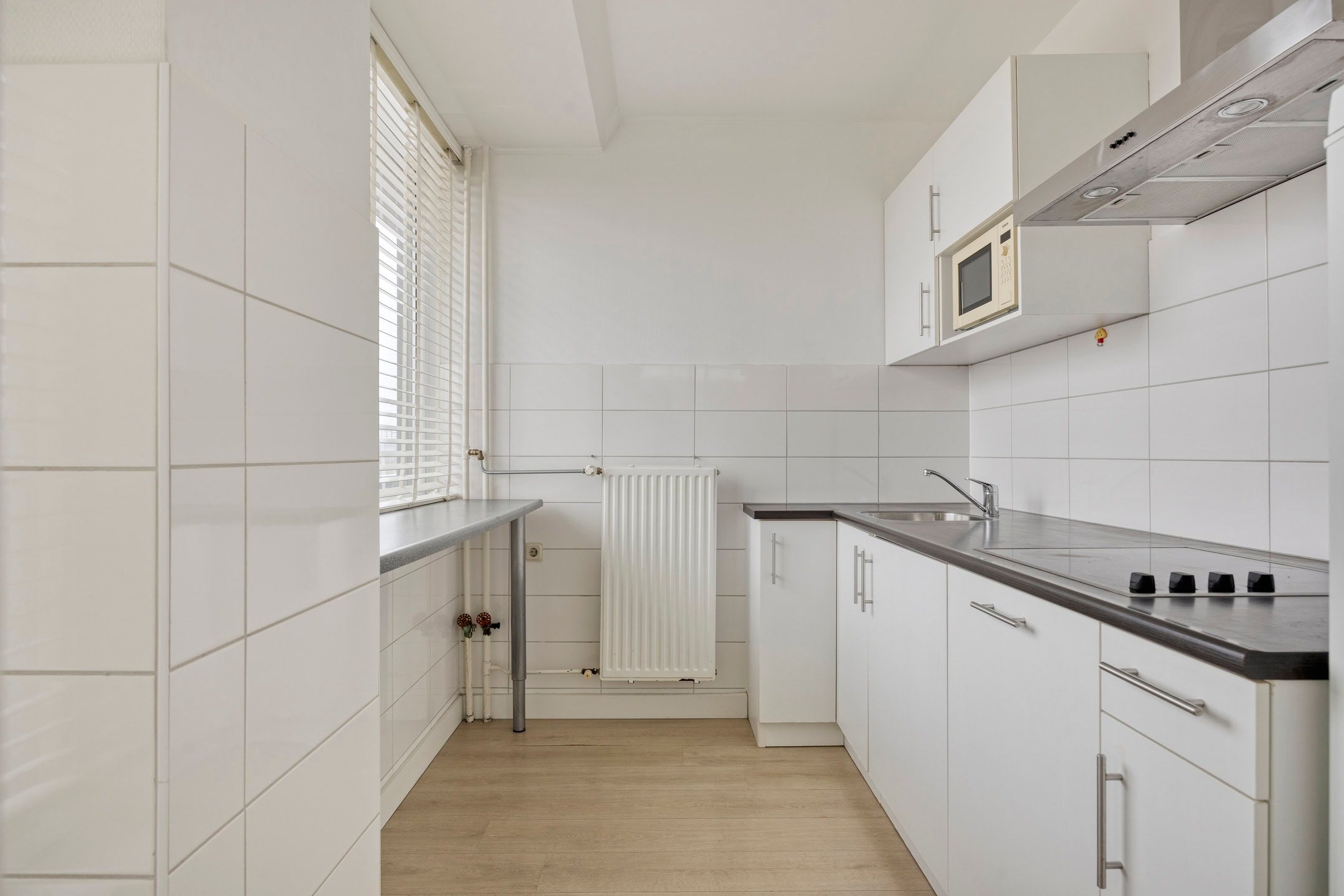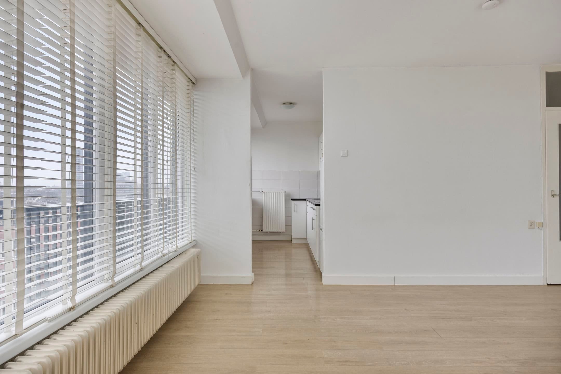 In het centrum van Eindhoven vind je dit lichte 2-kamer hoekappartement met een praktische indeling en een prachtig uitzicht. Met grote raampartijen zorgt het voor een open gevoel en het overdekte balkon biedt een fijne buitenplek. De gemoderniseerde keuken en badkamer, evenals de kunststof kozijnen met isolerende beglazing, dragen bij aan het comfort. Op de zesde verdieping kom je binnen via de hal die toegang biedt tot de woonkamer, waar de hoekligging zorgt voor veel licht en vrij uitzicht. De halfopen keuken sluit mooi aan bij de woonkamer en de slaapkamer biedt rust met een ingebouwde kast. De badkamer is modern en onderhoudsvriendelijk. Met een lift, inpandige berging en gemeenschappelijke fietsenberging zijn de voorzieningen compleet. Je woont hier centraal, met winkels en openbaar vervoer op loopafstand.