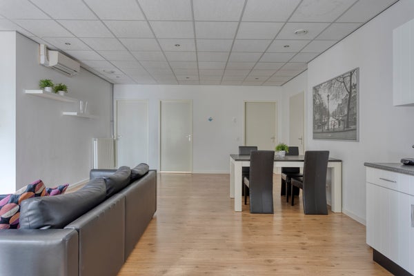 - De portiekflat heeft een woonoppervlakte van 82 m² en beschikt over 3 kamers, waarvan 2 slaapkamers;
