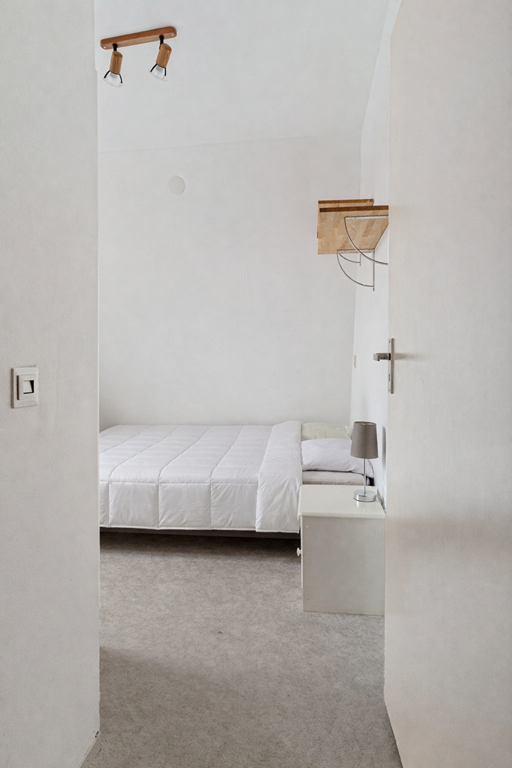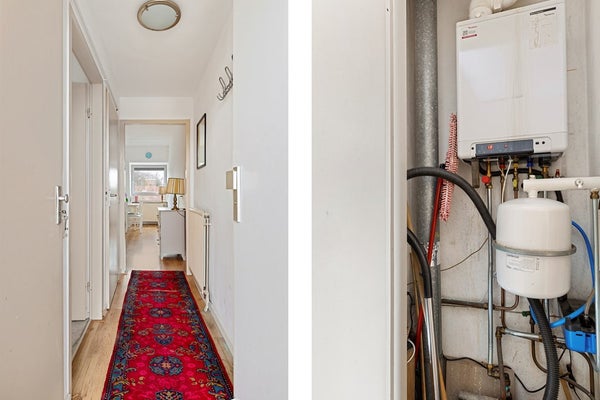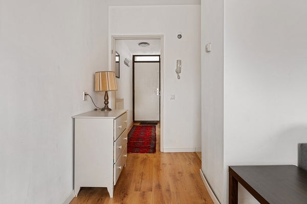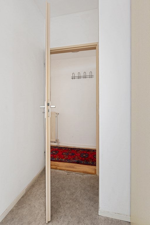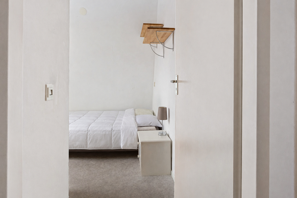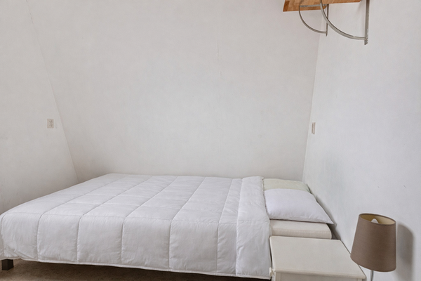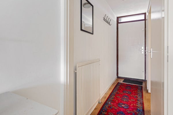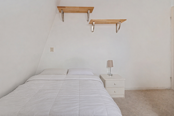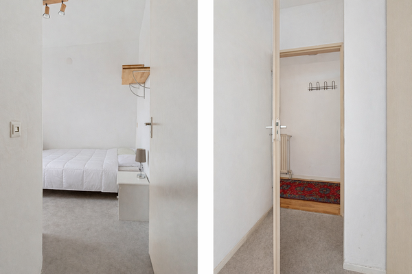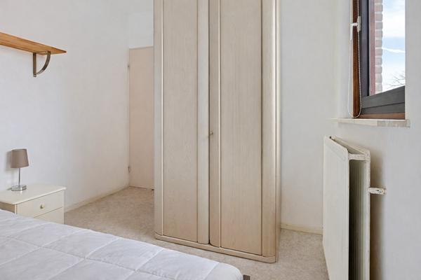 Nog vóór je binnenstapt zie je links van de voordeur de meterkast. Je komt binnen in de entree en direct links bevindt zich de cv-ketel. Loop je een stukje verder de gang in, dan vind je aan de linkerkant de slaapkamer: een rustige ruimte met plek voor een bed en kastruimte.