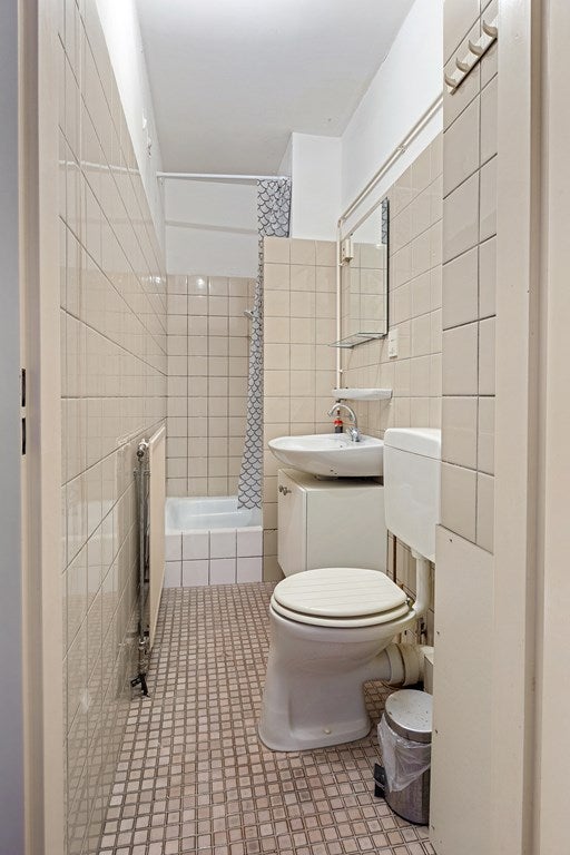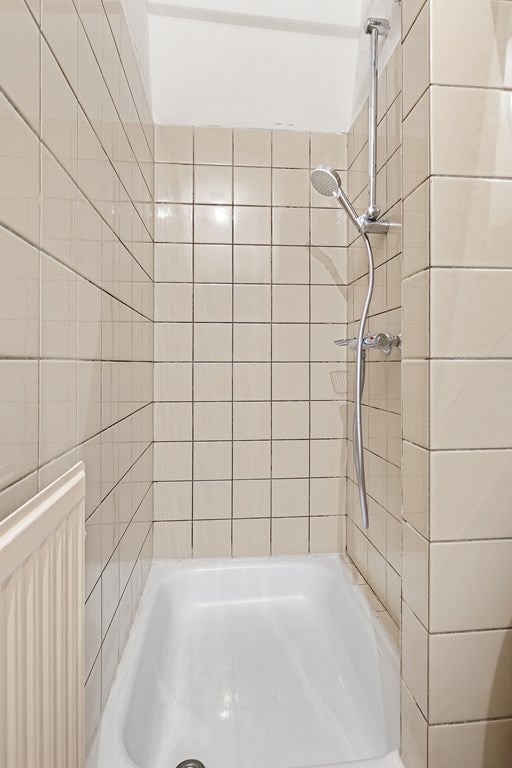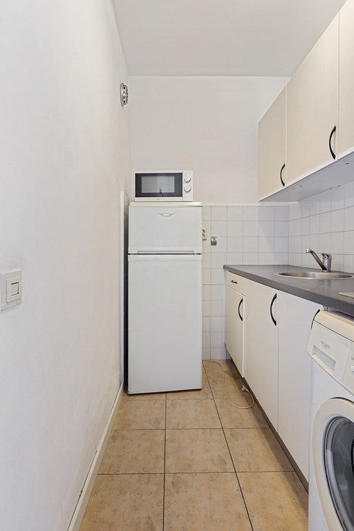 • Badkamer met toilet, wastafel, douche + wasmachineaansluiting