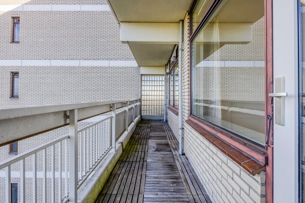 - De galerijflat heeft een woonoppervlakte van 87 m² en beschikt over 3 kamers, waarvan 2 slaapkamers;