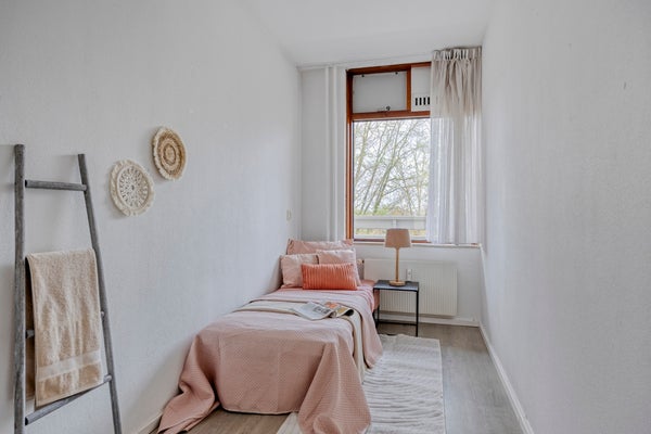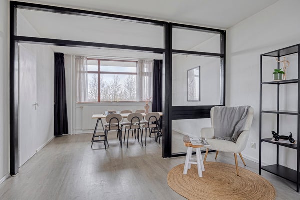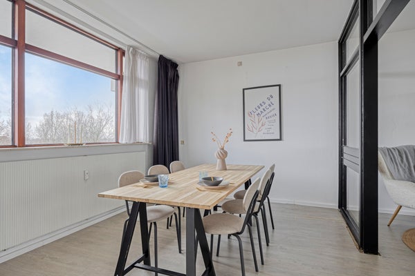 - De galerijflat heeft een woonoppervlakte van 87 m² en beschikt over 3 kamers, waarvan 2 slaapkamers;
