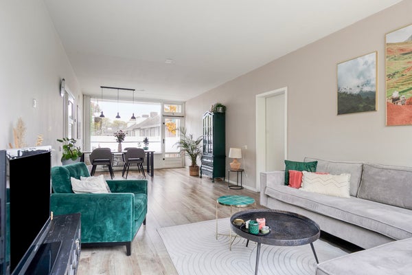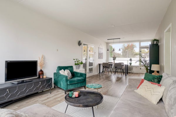 - De portiekflat heeft een woonoppervlakte van 74 m² en beschikt over 3 kamers, waarvan 2 slaapkamers;