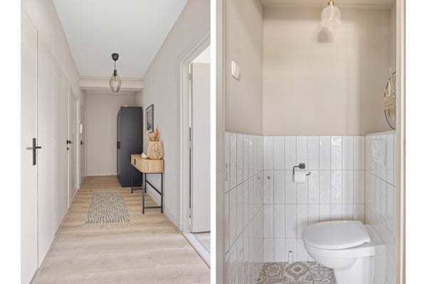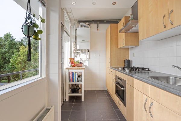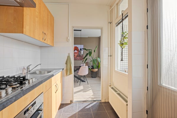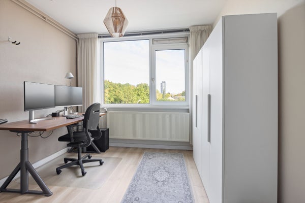 - De portiekwoning heeft een woonoppervlakte van 74 m² en beschikt over 3 kamers, waarvan 2 slaapkamers;