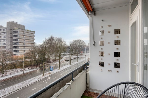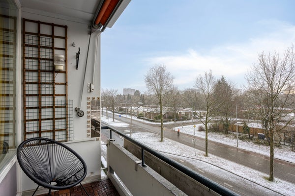 De woonkamer met laminaatvloer biedt veel lichtinval en toegang tot een balkon aan de voorzijde. De keuken is voorzien van gaskookplaat, oven en aansluiting voor vaatwasser. De volledig betegelde badkamer heeft een ligbad met douche en wastafel. Er zijn twee slaapkamers, beiden met laminaatvloer. Dubbel glas HR++ draagt bij aan de energiezuinigheid. Dit appartement biedt voldoende parkeergelegenheid en servicekosten van € 236,- per maand.