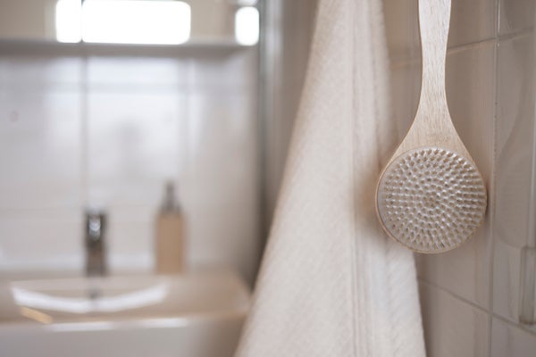 De badkamer is compact en functioneel ingericht met douche en wastafelmeubel. Daarnaast is er een separate toiletruimte, bereikbaar vanuit de hal.