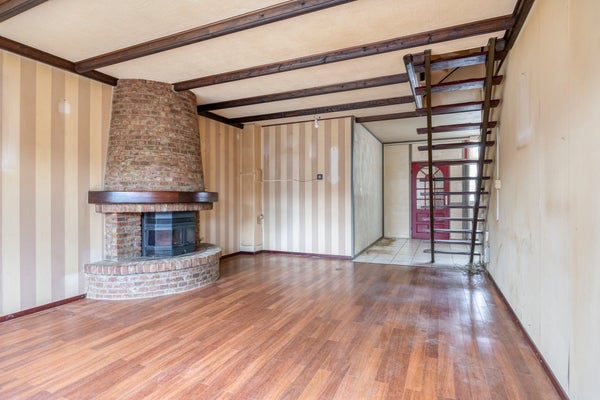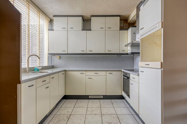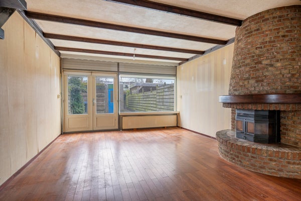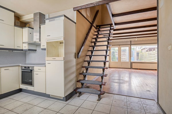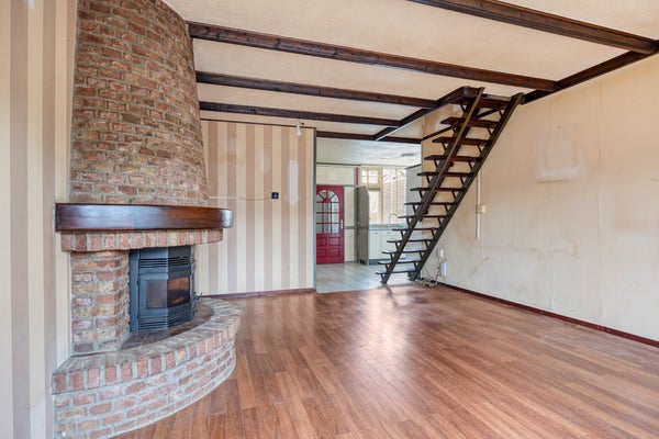 Jij betreedt de woning via de halfopen keuken, die praktisch aansluit op de woonkamer. De sfeervolle houtkachel zorgt voor warmte en gezelligheid, en met dubbele deuren heb je toegang tot de achtertuin. De keuken is voorzien van inbouwapparatuur en biedt ruimte voor verdere modernisering.