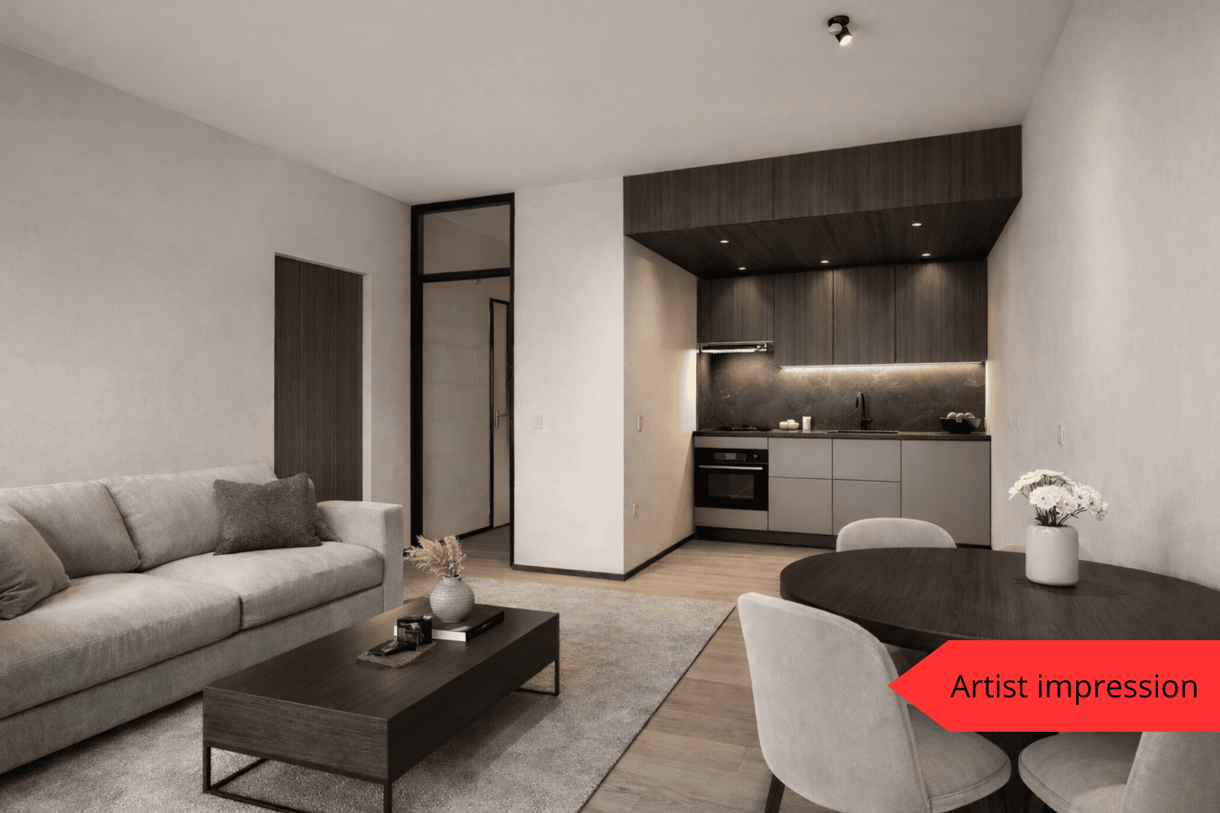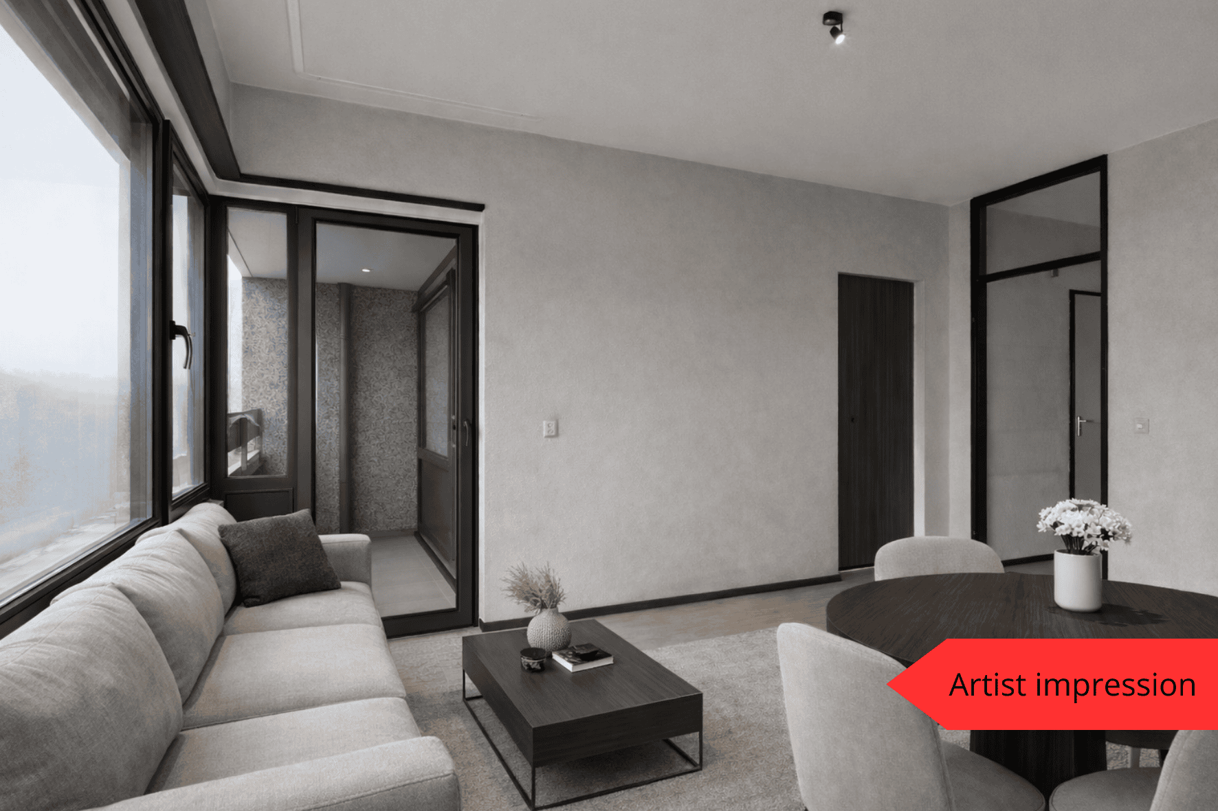 - De galerijflat heeft een woonoppervlakte van 46 m² en beschikt over 2 kamers, waarvan 1 slaapkamer;