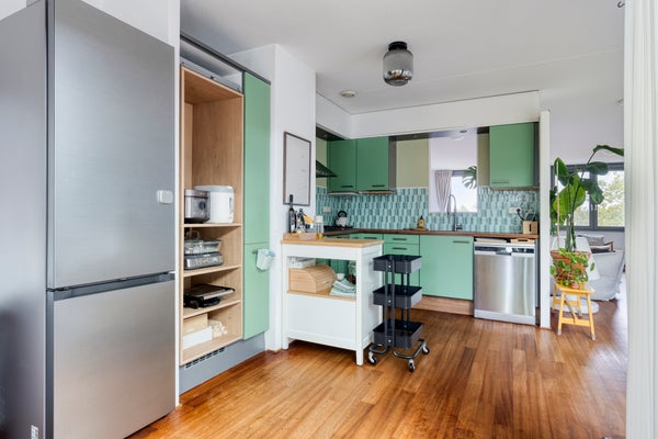 • De portiekflat heeft een woonoppervlakte van 115 m² en beschikt over 3 kamers, waarvan 2 slaapkamers;