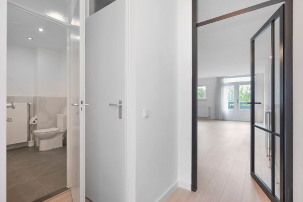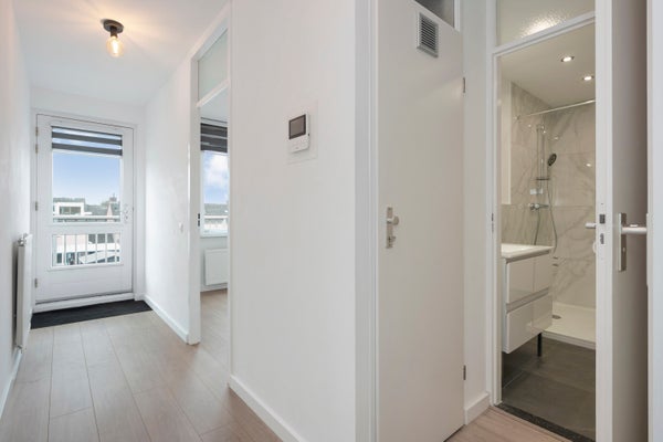 - De portiekflat heeft een woonoppervlakte van 63 m² en beschikt over 2 kamers, waarvan 1 slaapkamer;