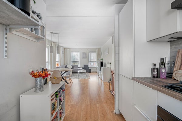 - De galerijflat heeft een woonoppervlakte van 62 m² en beschikt over 3 kamers, waarvan 2 slaapkamers;