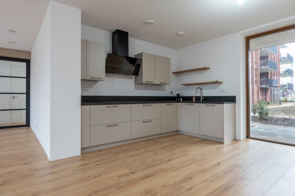 Dit moderne en energiezuinige appartement aan het Hemrikkwartier in Emmen is een zeldzame kans. Gelegen op de begane grond van het luxe appartementencomplex 'Delft Staete', dat in 2025 is opgeleverd, beschikt het over een woonoppervlakte van 115 m². Het appartement heeft een eigen entree, beschikt over twee slaapkamers en een badkamer met douche, toilet en wastafel. Vanuit de woonkamer heeft u toegang naar een royaal balkon, en u kunt genieten van een terras aan zowel de voor- als achterzijde. De energiezuinige voorzieningen zoals vloerverwarming, vloerkoeling en zonnepanelen zorgen voor lage energiekosten. Daarnaast is er een eigen parkeerplaats. De rustige, groene wijk biedt nabijheid van voorzieningen en prachtige natuur voor wandel- en fietsliefhebbers.