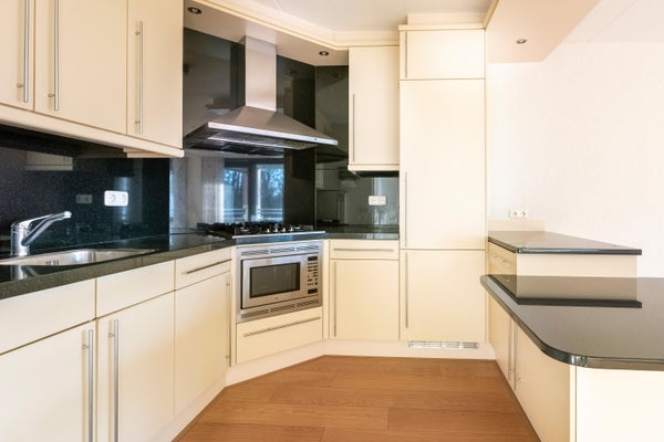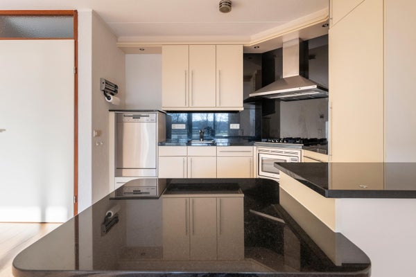 Dit lichte appartement op de eerste verdieping van het appartementencomplex Residence Meerdijck biedt een prachtig uitzicht op een met bomen omgeven vijver. Met een royaal, overdekt terras van ongeveer 16 m² kunt u van het vroege voorjaar tot de herfst genieten van de zon. De indeling omvat een entree, royale hal, ruime woonkamer met schuifpui, open keuken met inbouwapparatuur, badkamer met hoekbad en douche, apart toilet, een masterbedroom, en een kleinere slaapkamer of studeerkamer met een tweede balkon. Het appartementen is levensloopbestendig en geschikt voor minder- validen. In de kelder vindt u een eigen parkeerplaats, een berging en een fietsenstalling. De locatie is ideaal nabij scholen, winkelcentra en voorzieningen.