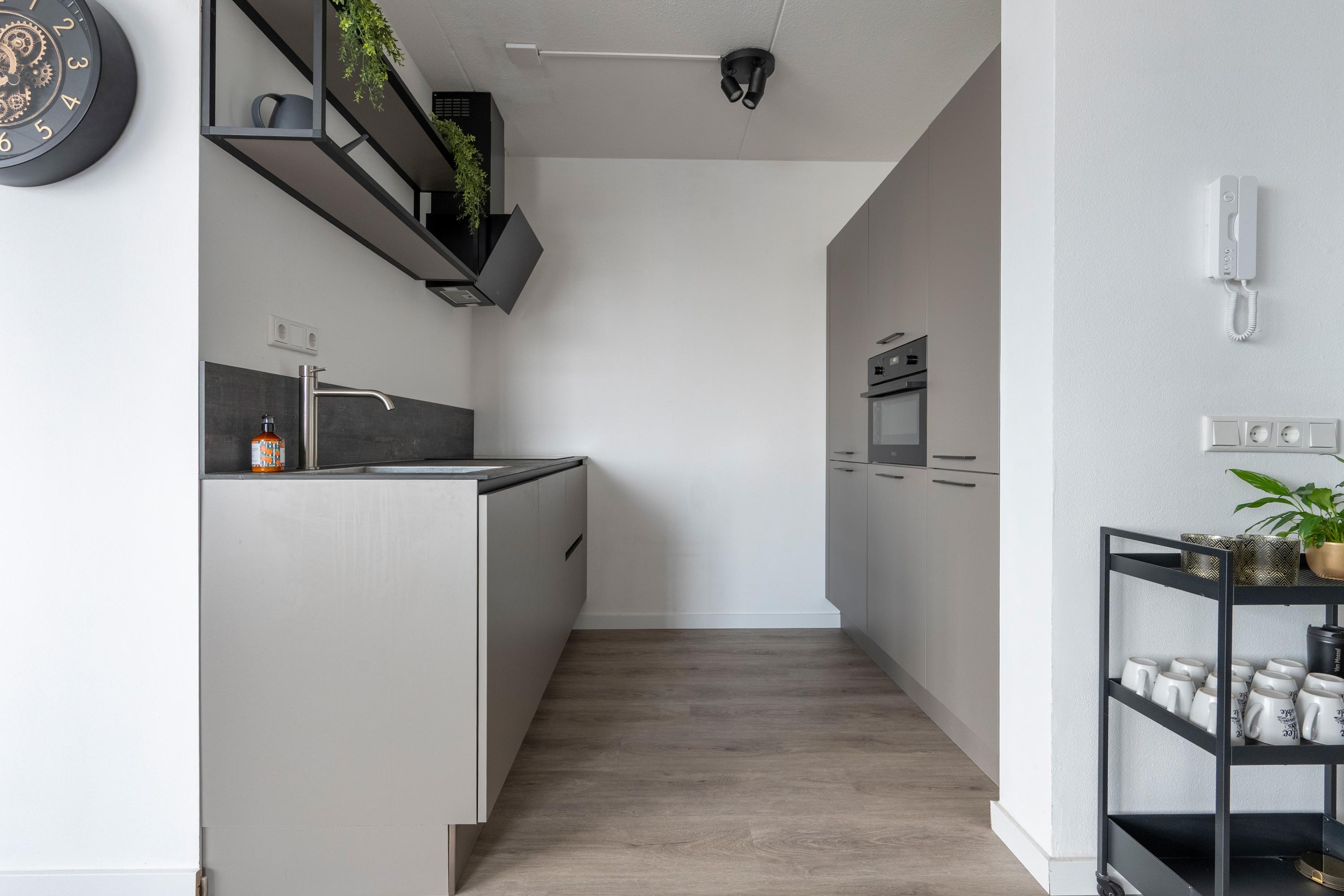 Dit instapklare 2-kamerappartement op de vijfde verdieping van de ‘Weiertflat’ in het centrum van Emmen is in 2023 compleet gemoderniseerd. Met een oppervlakte van 61 m² biedt het appartement een lichte woonkamer met open keuken, voorzien van moderne inbouwapparatuur. Er is één slaapkamer en een badkamer met een douche en wastafel. Via de woonkamer bereik je een balkon op het oosten met vrij uitzicht. Het appartement beschikt over een moderne PVC-vloer en een aparte berging in de kelder. Parkeren kan in de parkeerkelder, met gratis uren beschikbaar en opties voor vergunningen. De maandelijkse VVE-bijdrage bedraagt € 284,88, inclusief water en stookkosten. Het gebouw is goed onderhouden en toegankelijk voor ouderen.