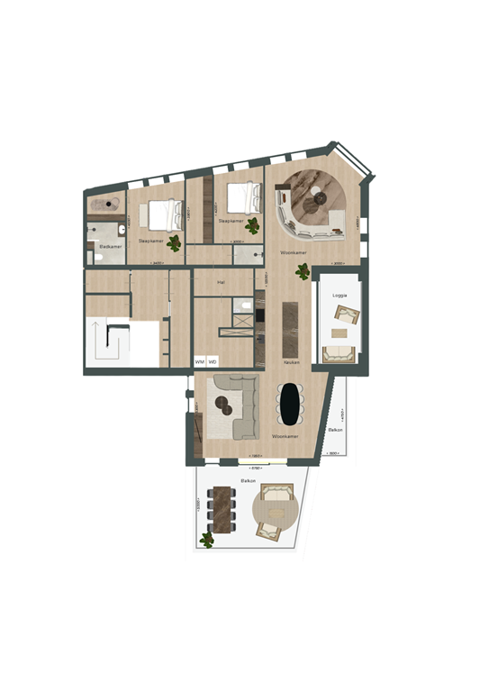 - De portiekflat heeft een woonoppervlakte van 176 m² en beschikt over 4 kamers, waarvan 2 slaapkamers;