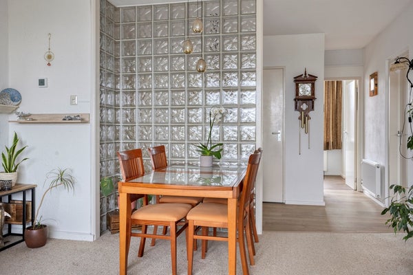 Vanuit de hal loopt u door naar de ruime en lichte woonkamer. Dankzij de grote raampartijen wordt deze ruimte overspoeld met natuurlijk daglicht, wat zorgt voor een open en aangename woonbeleving. Er is volop ruimte voor zowel een gezellige zithoek als een royale eethoek.