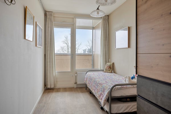 De derde slaapkamer is gelegen aan de zijde van de keuken en heeft eveneens toegang tot dit balkon. Deze kamer is veelzijdig in gebruik en leent zich uitstekend als slaap-, werk- of hobbyruimte.