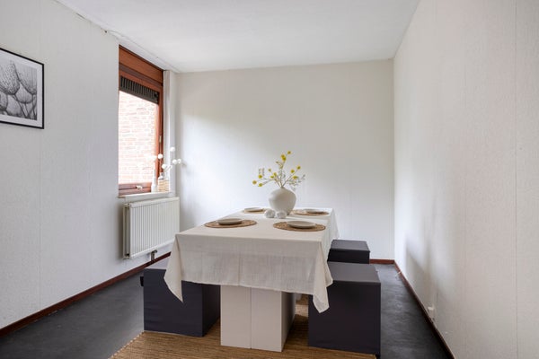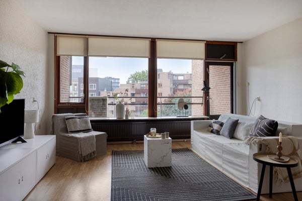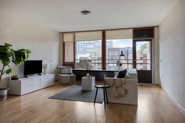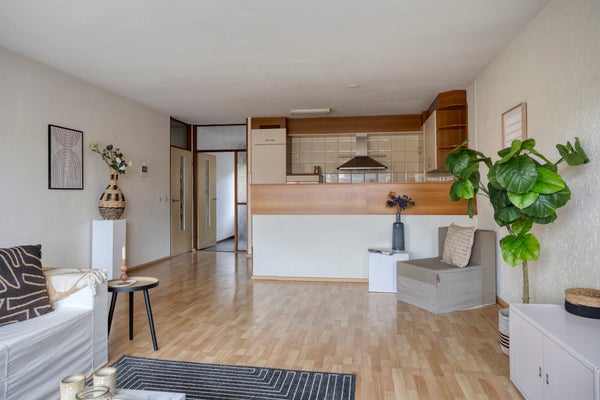 - De portiekflat heeft een woonoppervlakte van 91 m² en beschikt over 4 kamers, waarvan 3 slaapkamers;
