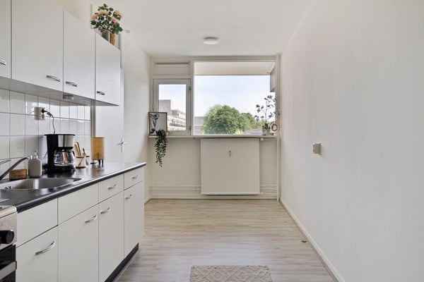 - De galerijflat heeft een woonoppervlakte van 104 m² en beschikt over 3 kamers, waarvan 2 slaapkamers;