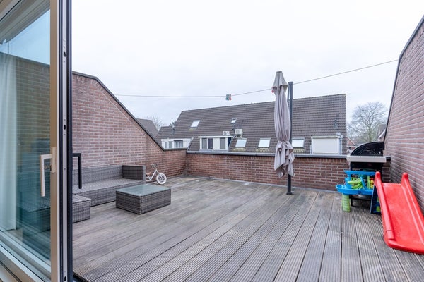 Het dakterras op het zuiden genieten wij elke zomer enorm van. Daarnaast is het sinds de verbouwing (kunststof kozijnen HR++ glas en schuifpui ipv achterdeur) erg aangenaam in huis en mooi licht in huis. -