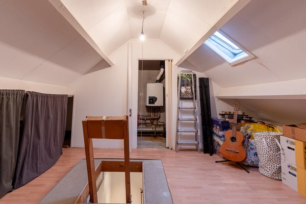 via een vlizotrap is de ruime zolder te bereiken. Hier meer dan genoeg bergruimte en de c.v. ketel is hier te vinden.