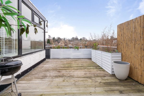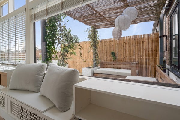 En dan hét pronkstuk van deze bovenwoning: het riante dakterras op het zuiden, maar liefst 38 vierkante meter groot. Wat je plannen ook zijn – tuinieren, een kleurtje pakken op je loungebank, borrelen met vrienden of buiten eten met het gezin – dit terras is je tweede woonkamer in de zomer.