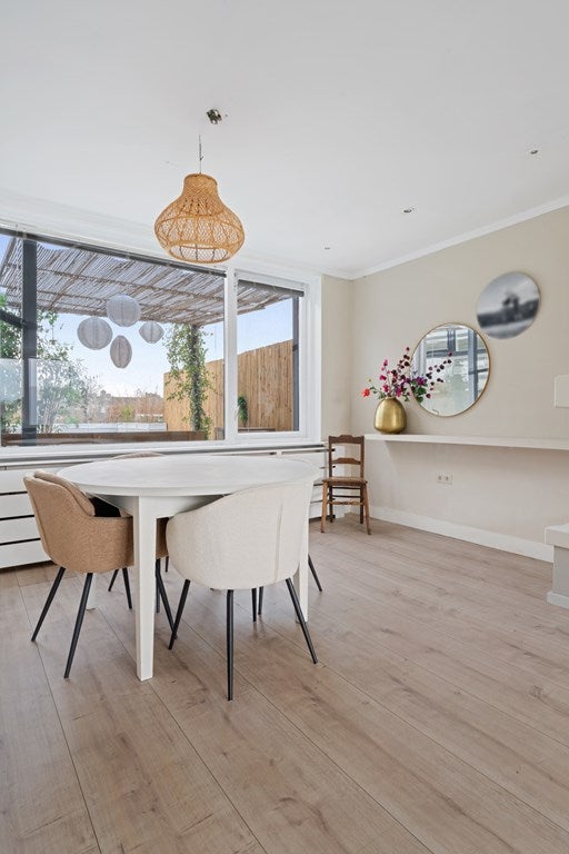 Zodra je binnenkomt, valt meteen op hoe lekker licht de woonkamer is. Grote ramen laten zonlicht royaal naar binnen stromen waardoor de woonkamer ruimtelijk en tegelijk gezellig aandoet. Of je nu kiest voor een knusse hoekbank, een speelhoek voor de kids of een inspirerende werkplek – het kan hier allemaal zonder concessies.