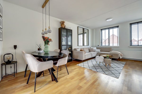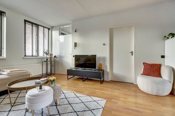 • De portiekflat heeft een woonoppervlakte van 56 m² en beschikt over 2 kamers, waarvan 1 slaapkamer;
