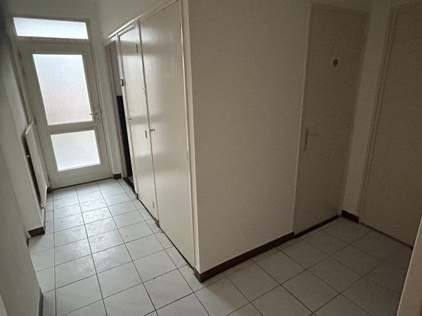 Entree/hal 4,00 x 1,10 met plavuizenvloer, meterkast met slimme meters en bergkast.