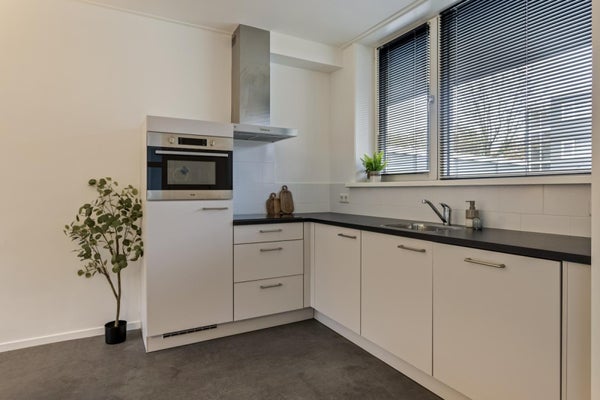 Via de voordeur betreedt u de hal en heeft u toegang tot de multifunctionele kamer, badkamer en woonkamer met open keukenopstelling. De woonkamer heeft aan de voorzijde grote raampartijen en een openslaande deur met toegang naar het terras. De moderne keuken is voorzien van: afzuigkap, combi magnetron, vaatwasmachine, koelkast en inductie kookplaat.