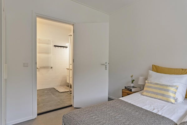 Een volledig afgewerkte, moderne bungalow, gelegen in het appartementencomplex "De Kromme Poel". T.i. foto's zijn impressiefoto's van een soortgelijk appartement.