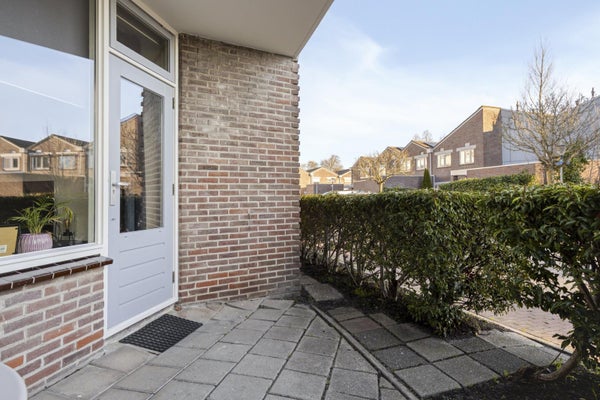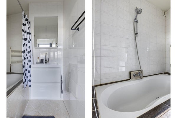 De zithoek ligt aan de tuinzijde en is heerlijk licht door het grote raam. Via de tuindeur heb je toegang tot het terras (zuid), waar je zowel van de zon als van een schaduwplekje kunt genieten. De slaapkamer is toegankelijk via de woonkamer en grenst ook aan de tuinzijde. De badkamer bereik je via de slaapkamer en is voorzien van een ligbad met douche, wastafelmeubel en spiegelkast.