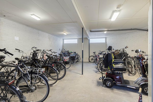Er is een centrale entree met toegang tot de gezamenlijke fietsenberging en buitenruimte.