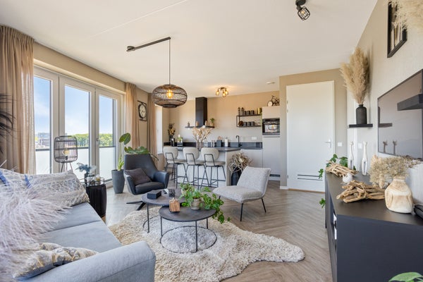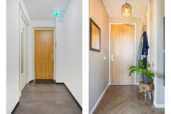 - De portiekflat heeft een woonoppervlakte van 56 m² en beschikt over 2 kamers, waarvan 1 slaapkamer;