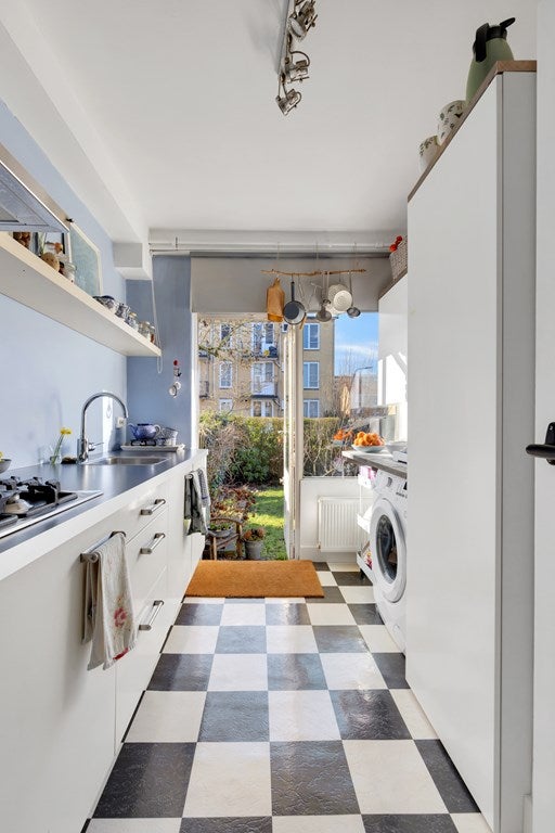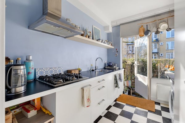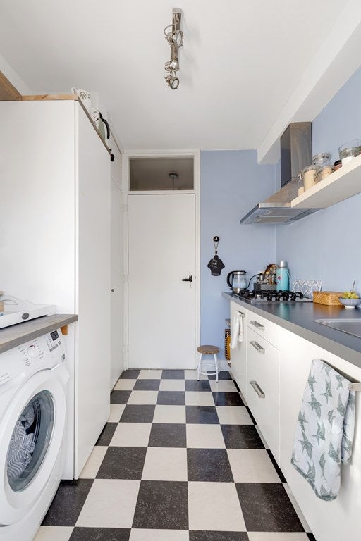 De keuken is ingericht als galley-kitchen en is voorzien van een 4-pits gasfornuis en een afzuigkap. Verder is de keuken voorzien van diverse kastruimte alsmede een inbouwkast en bevindt zich er een wasmachine aansluiting en de CV-ketel.