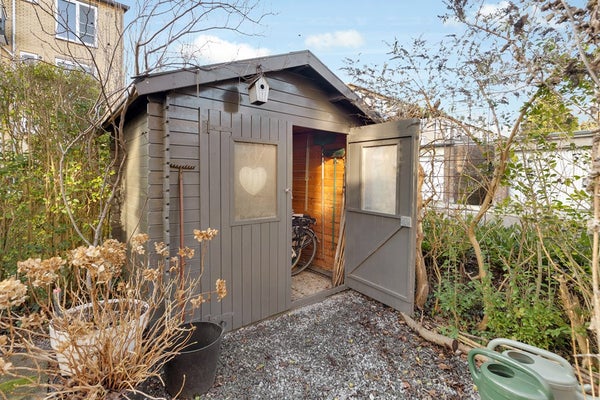 - Achtertuin op het zuidoosten met achterom en berging/tuinhuis