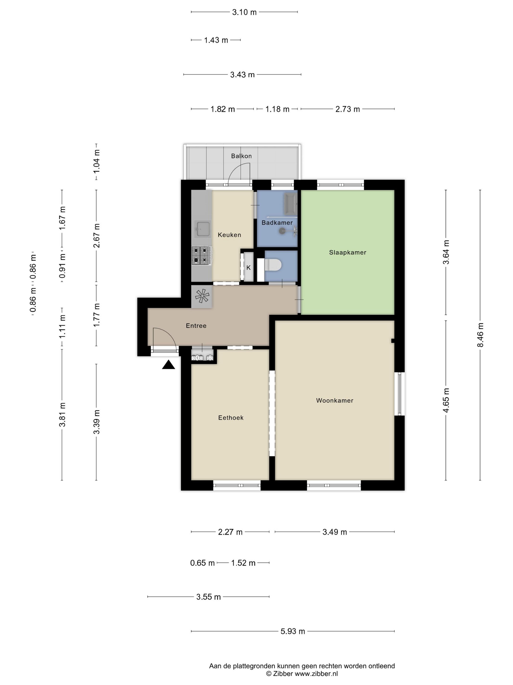 - De galerijflat heeft een woonoppervlakte van 52 m² en beschikt over 2 kamers, waarvan 1 slaapkamer;