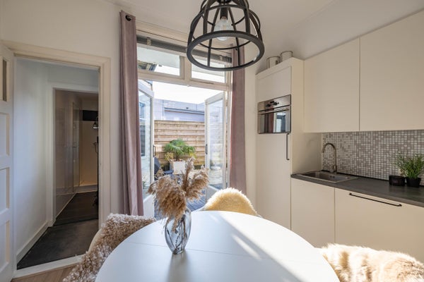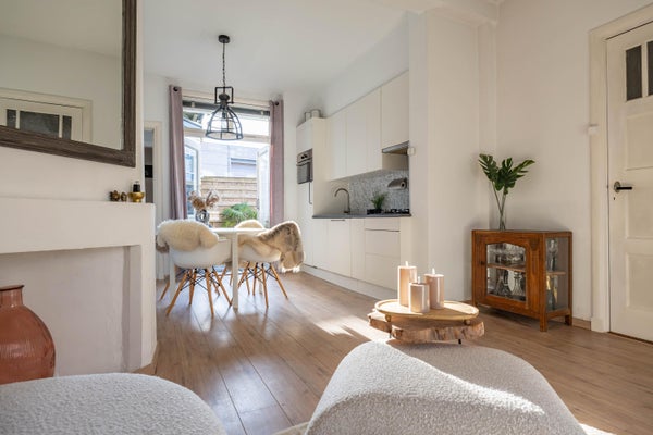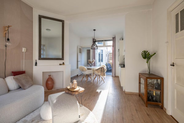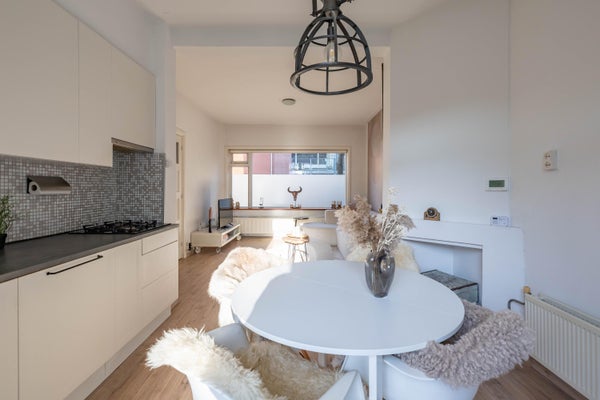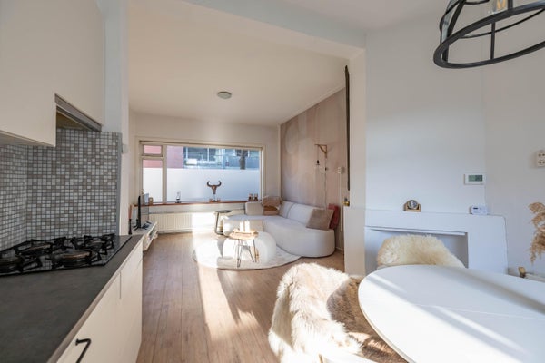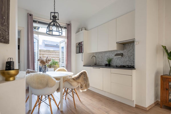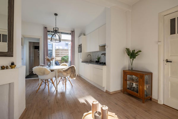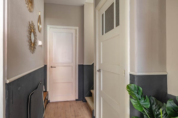 Deze benedenwoning in de groene wijk Helpman biedt een ideale woonervaring met 2 slaapkamers en een zonnige tuin op het zuiden. Bij binnenkomst in de hal zijn er toegangspunten naar het nette toilet en een ruime woonkamer met open keuken, waardoor veel natuurlijk licht binnenstroomt. De keuken is volledig uitgerust met moderne apparaten en biedt toegang tot de verzorgde achtertuin. Op de tweede verdieping bevindt zich de tweede slaapkamer en een balkon, ook op het zuiden. Het gebouw, uit 1934, heeft een woonoppervlakte van 50m² en beschikt over een praktische schuur. In de nabije omgeving zijn er diverse voorzieningen en uitstekende bereikbaarheid met openbaar vervoer en auto. De woning is goed onderhouden en heeft energieklasse F, met mogelijkheden voor isolatie subsidies.