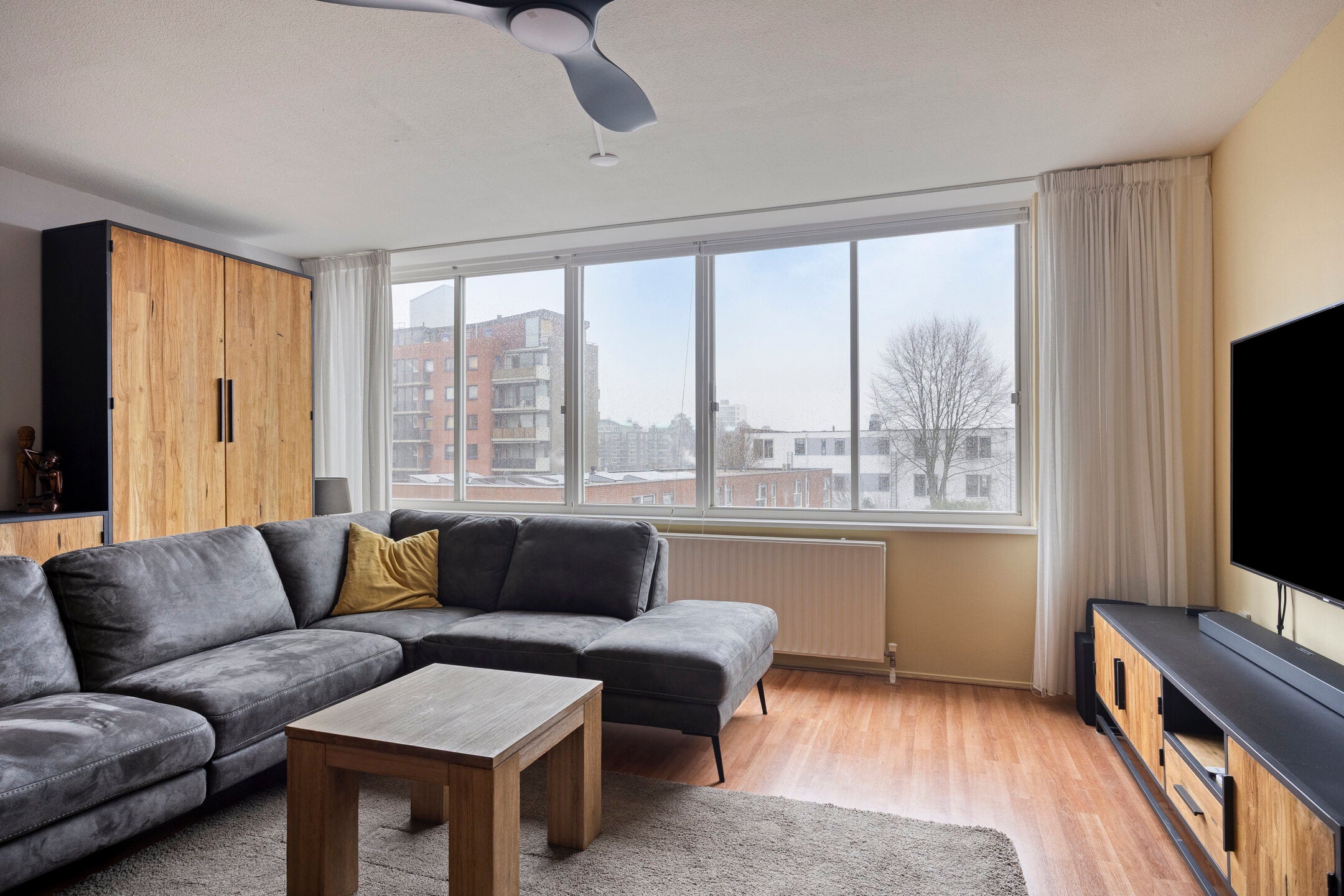 In de geliefde woonwijk Hoornse Meer ligt dit goed onderhouden appartement. De woning heeft een ruime en lichte woonkamer van ca. 32 m² met een halfopen keuken, die is uitgerust met een gaskookplaat, combi-oven en vaatwasser, en biedt toegang tot een groot zonneterras. Met drie slaapkamers en een moderne badkamer is het appartement instapklaar. De locatie is geweldig, vlakbij het Hoornse Meer, winkels, sportfaciliteiten en openbaar vervoer. De indeling bestaat uit een entree/hal, een ruime woonkamer, keuken, badkamer, meterkast, CV-kast, toilet en drie slaapkamers. Tevens is er een externe berging van ongeveer 5 m². Belangrijke details zijn energielabel A, volledig geïsoleerd, een Vaillant cv-ketel uit 2014 en een Mitsubishi airco. De actieve VvE vraagt een bijdrage van € 163,00 per maand.