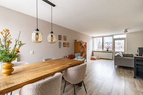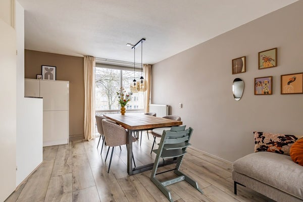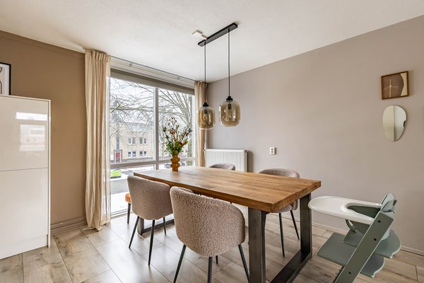 De bovenwoning leent zich dankzij drie slaapkamers uitstekend voor een gezin, maar ook voor starters en thuiswerkers is de woning ideaal. Als nieuwe bewoner stap je in een kant en klare woning met een speelse indeling en een sfeervolle, eigentijdse uitstraling. De woonkamer ligt op de eerste verdieping, wat zorgt voor een goede lichtinval en een vrij uitzicht. De open keuken (2023) met inbouwapparatuur is afgewerkt met mooie materialen en heeft trendy zwarte accenten. Via de woonkamer kom je op het balkon die gunstig op het westen ligt.