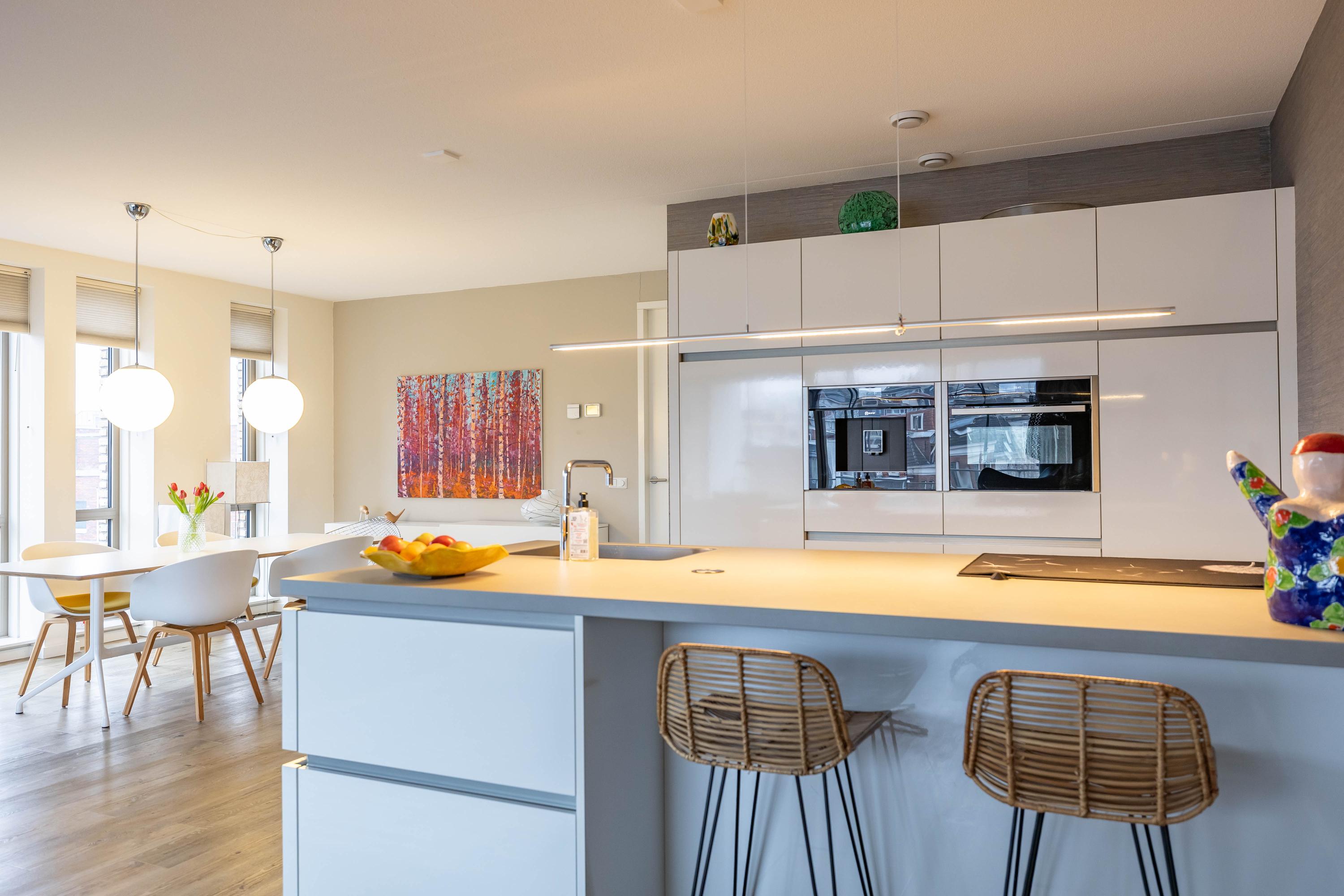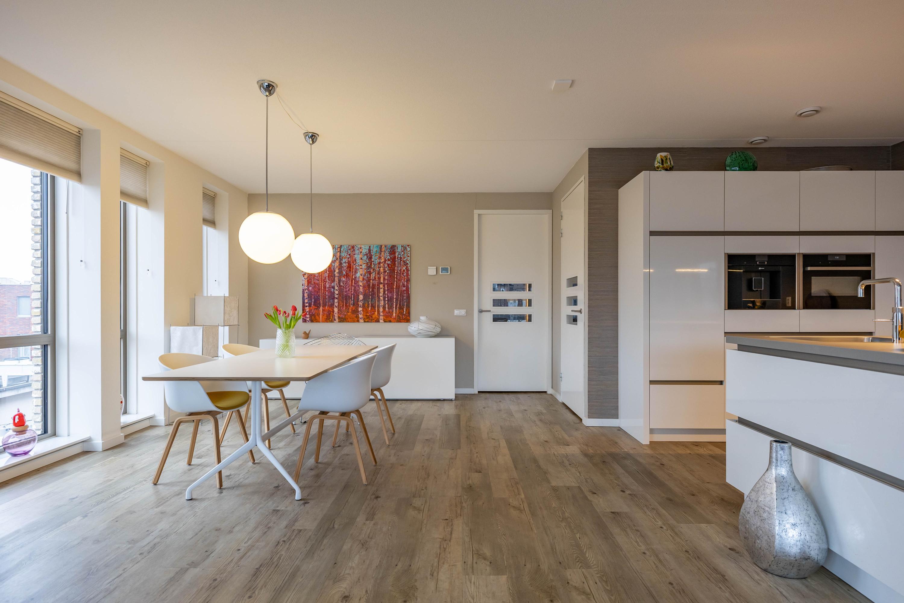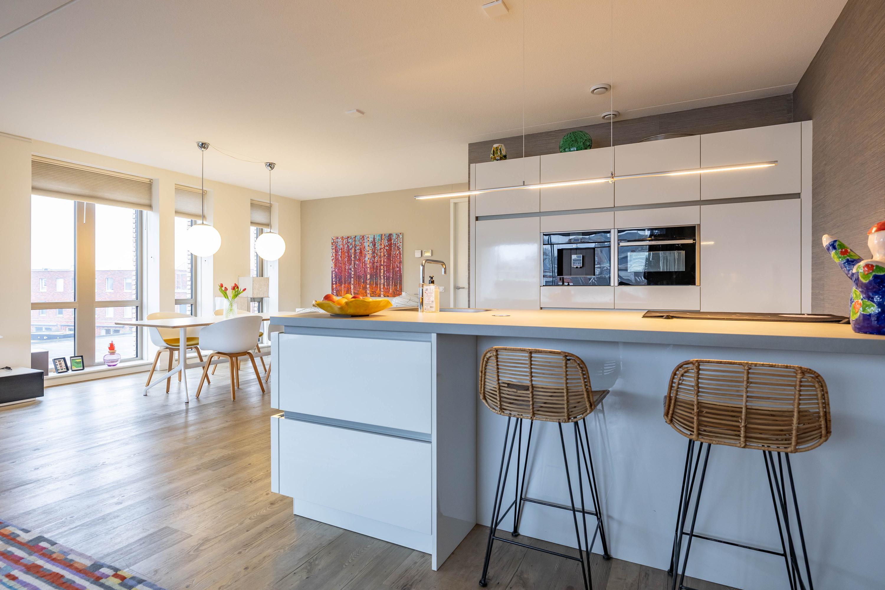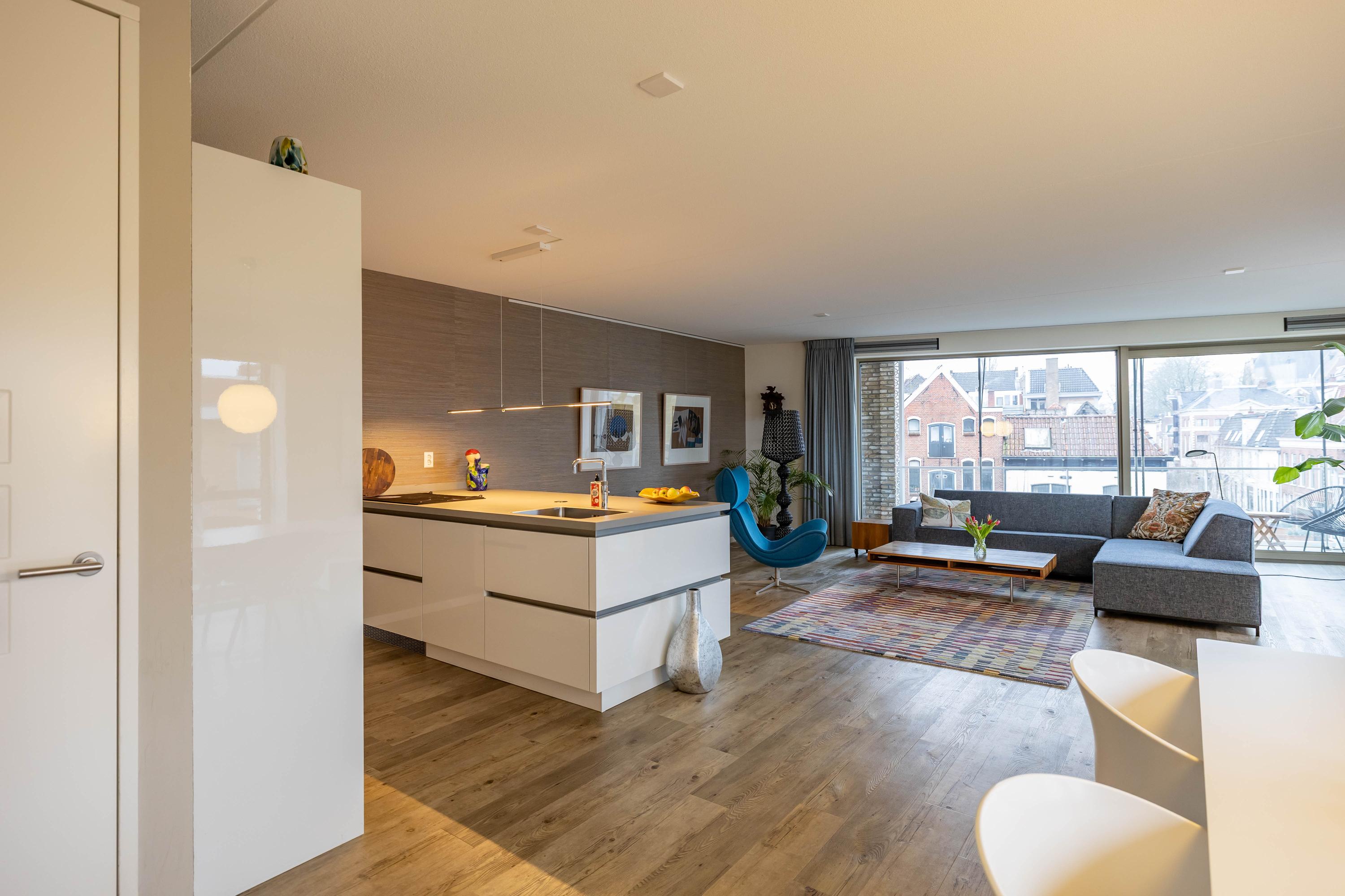 Binnen vindt u een ruime woonkamer met een open luxe keuken, compleet met hoogwaardige apparatuur. De slaapkamer aan de achterzijde is licht en biedt veel bergruimte. De moderne badkamer is uitgerust met een inloopdouche en een vrijstaand bad. Het appartement heeft bovendien vloerverwarming en een actieve VVE voor slechts € 164,- per maand. Met de Grote Markt en lokale voorzieningen op loopafstand, is dit een ideale plek voor urban living.
