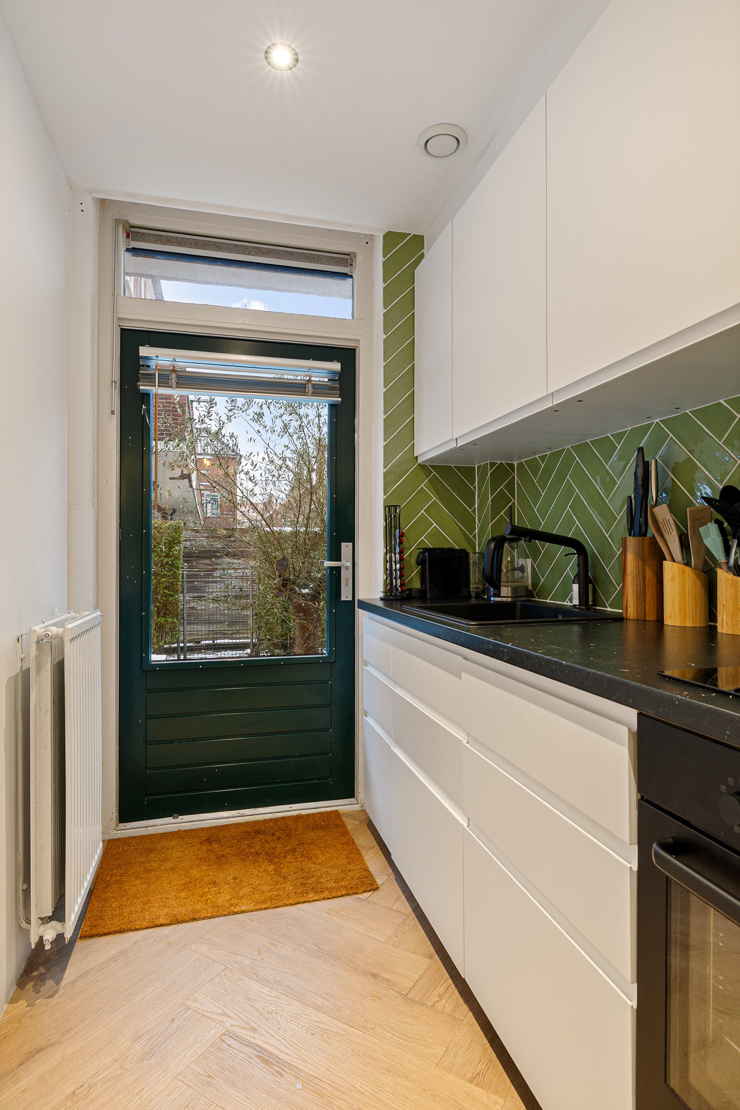 Met een oppervlakte van 77 m² bevat de woning twee slaapkamers, een modern toilet en een comfortabele woon- en eetkamer, gescheiden door een tussendeur. De keuken biedt toegang tot de ruime achtertuin met afgesloten achterom, een perfecte plek om te ontspannen.